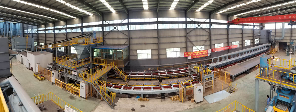 • 機器人柔性造型線 1.合箱精度高, 自動夾持. 2 .維護保養少 高效率,功耗小 3.機器人銑澆道(任何部位,任何形式)4.可快速自動模具更換,自動砂箱內壁清理.